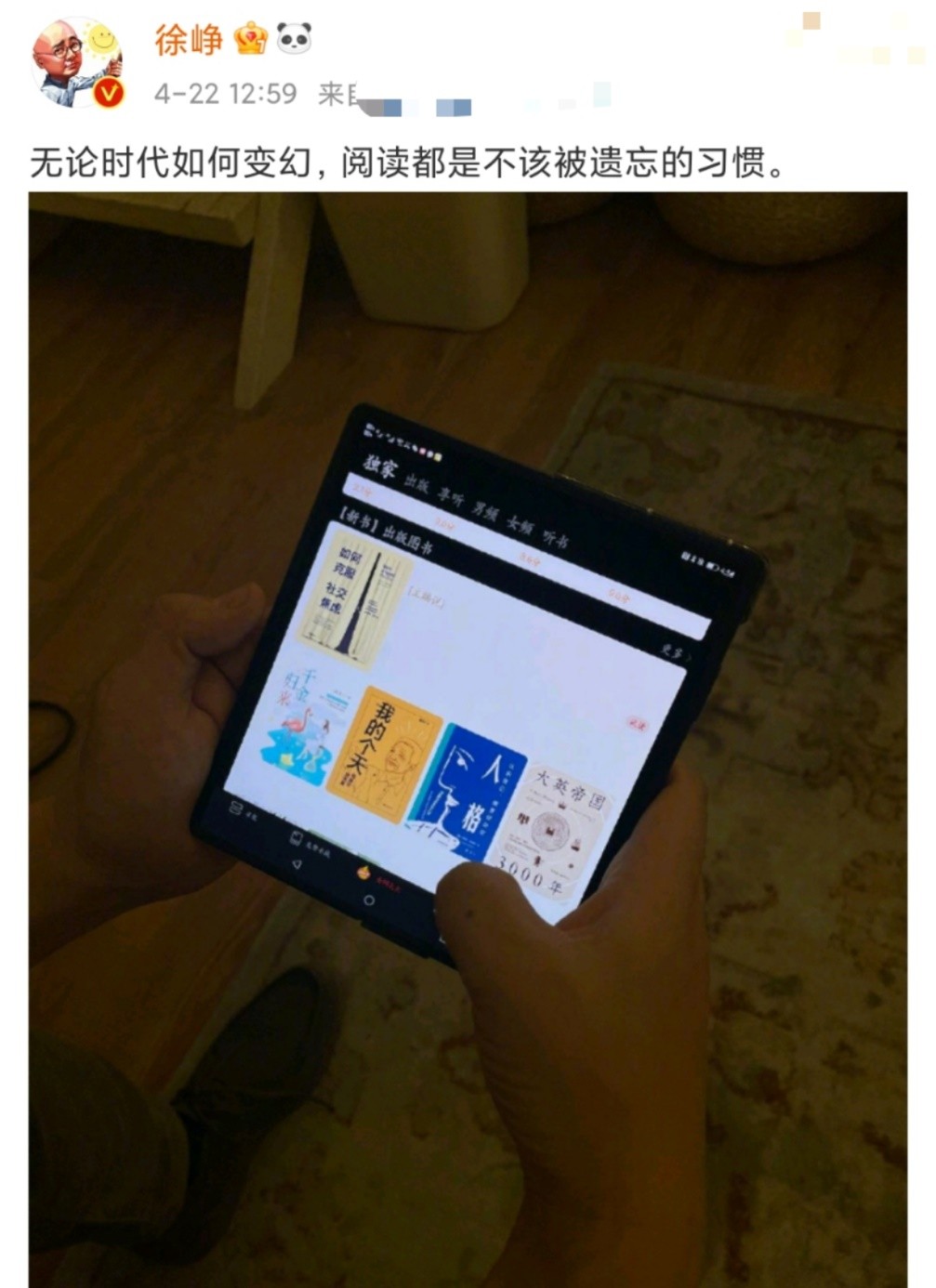 今日,徐峥在社交平台上晒出看电子书的图片,并呼吁大家经常阅读。