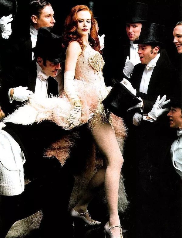 《红磨坊》,一部亦真亦幻的影片,无处不在的幻想,却又足够的真实。和《茶花女》极其类似的电影,不仅仅是人物、情节,甚至是要反映的一种内心的东西,都近乎一模一样。但《红磨坊》,却着实让人惊叹。彻响的音乐,华丽的服饰,缤纷的色彩,和形形色色的人,电影为我们讲述了一个似乎要比《茶花女》更为热烈和光鲜的故事。