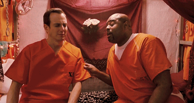 在狱中的,白白嫩嫩的尼尔森还招惹了心狠手辣的白人帮派头目,同时又吸引了黑人帮派头目大基佬的目光,片中满是诙谐的黑色幽默,充满了基情,令人捧腹。