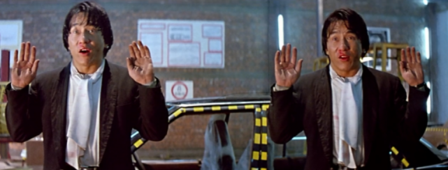 成龙的搞笑虽然比不上许冠文和周星驰,但是在动作之间融入搞笑细节,还是很有成龙自己的特点的。