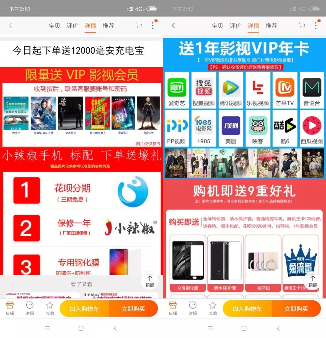 就连一些淘宝店主也以提供这种全网会员作为购买商品的附赠礼物。笔者曾联系多家出售手机、笔记本电脑的商家,他们的淘宝页面上直接亮出买东西送全年视频会员。当笔者与其沟通时,他们对于视频会员是否是正规渠道得到的闪烁其词,在多次追问下才含糊地说出这种会员是视频解析app会员或者提供解析软件。从这一点可以看出,现在视频解析的泛滥和半公开化。