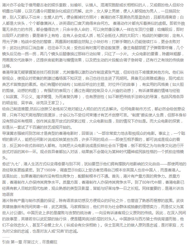 里面就说过九十年代的港片“尽皆过火,尽是癫狂”,还着重提到了《乌鼠机密档案》,任达华饰演的乌鼠烧死小女孩那段,被他称之为“香港之最”,