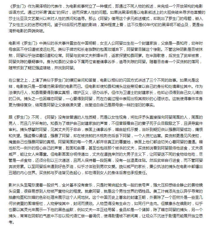 " 这部片子的色调怪怪的,也不知道是不是恐怖片,有人说是用了类似罗生门的架构,恕我没文化,也不知道那是个啥构架,画个笔记下次了解。