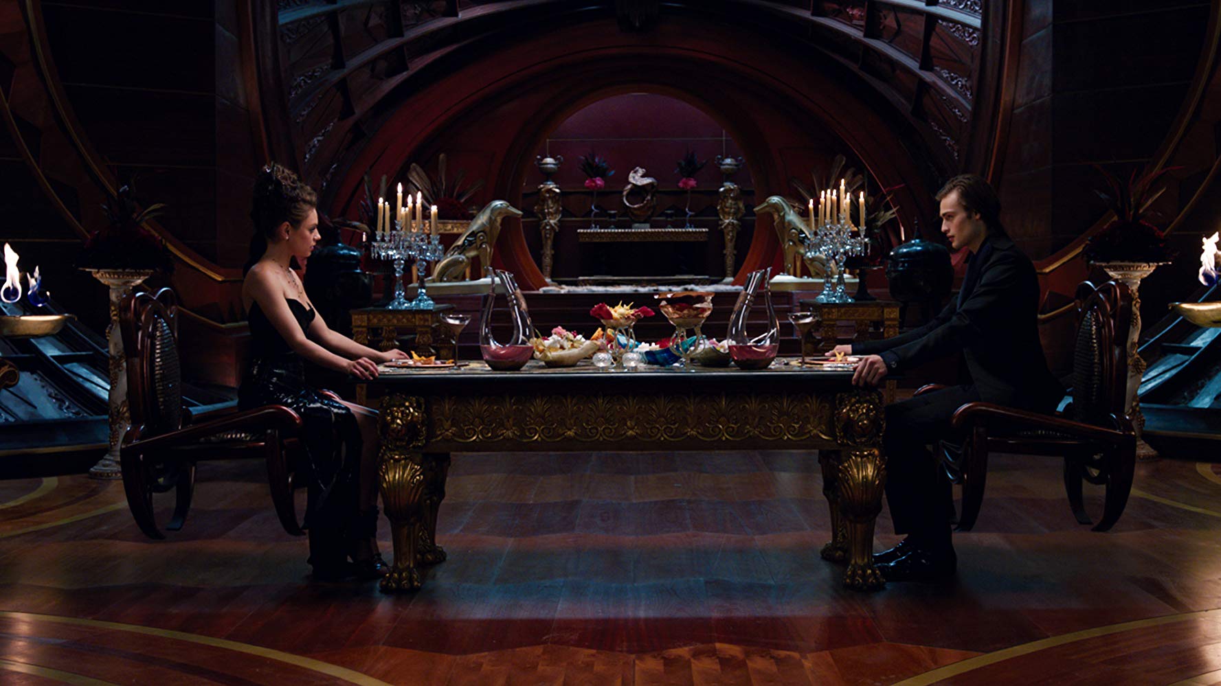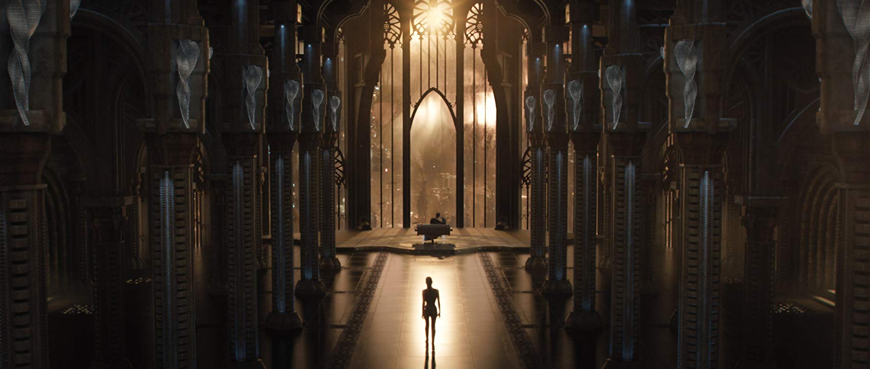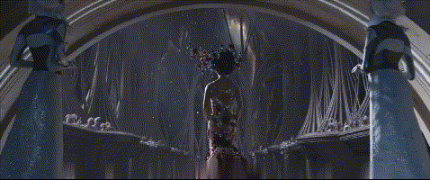 但即便如此,这部片子依然看点十足。看点便在其视听效果和特技运用上。这部片子从视觉策划、场景设计、分镜控制到具体的运镜、灯光、色彩、视效、剪辑、道具、服装……无不精益求精,令人大饱眼福。其整体场景的铺陈和细节元素的应用都让人对“太空歌剧”这个概念有了更新,更深入的理解和认知。而且难能可贵的是,此片的视觉一反以往科幻电影冰冷、工业、高技、理性的特征,加入了诸多的艺术及文化元素,美轮美奂的同时让人耳目一新。代表超高科技水平的巨型宇宙飞船设计上却融入了哥特式建筑的风格和文艺复兴格调的雕塑、配饰,结合明快的色彩和讲究的光影处理,让整体视觉呈现“复古、时尚与幻梦并存”的绮丽色彩。有质感、有品味、有历史、有积淀、有创见,有说服力,让人深刻感受到的是人类作为理性和感性的综合体,科技和人文是同步发展,无法偏废的。这点上也体现出导演和整体创作团队高超的审美水平和深厚的人文底蕴。只可惜,这种塑造不朽之作的野心被平庸的叙事,拖沓的情节,公式化且浮于表面的表演糟蹋埋没。