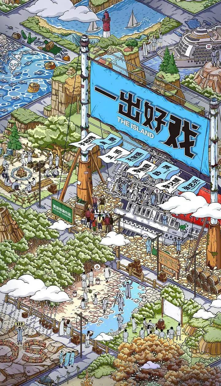 《一出好戏》讲述了公司出海团建,欠了一屁股债的马进途中得知自己中了头奖,就在他以为自己即将咸鱼翻身的时候,一股巨浪把所有人带到了荒岛。修船失败、给不出解决方案的张总和具备野外求生技能的导游小王形成了鲜明对比,原有的秩序逐渐瓦解,新的秩序建立。