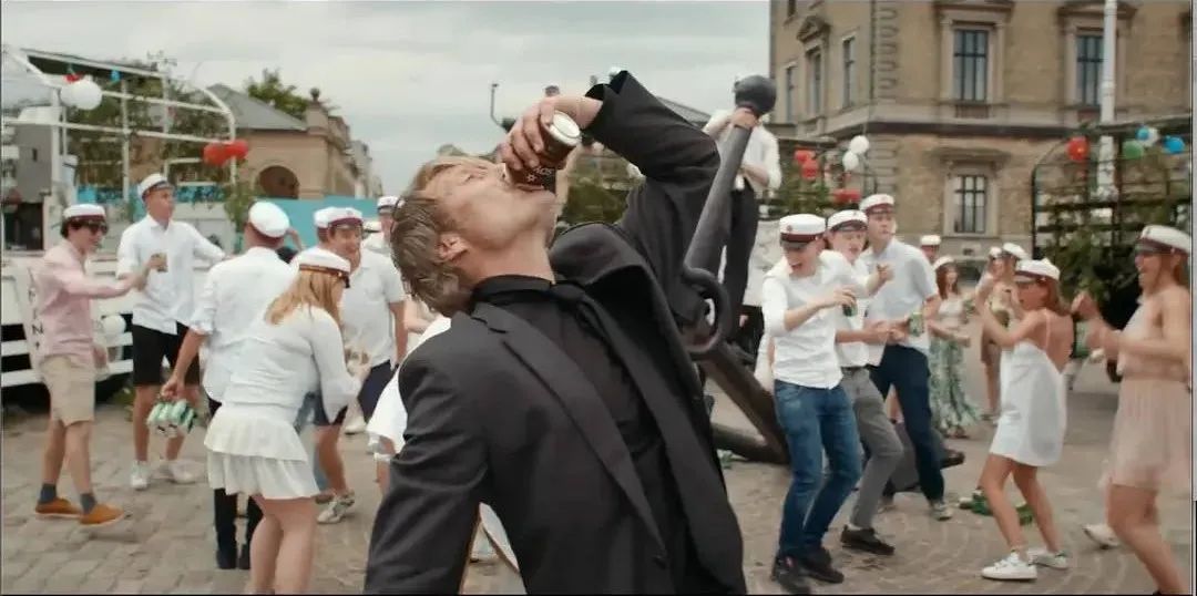 片中有三段学生合唱:音乐教室的《我出生在丹麦》、教堂里的《有一处好地方》(丹麦国歌)以及毕业时的《在寒冷中休憩》像一根隐线串联着丹麦的历史。按照人们对丹麦人的理解,这些维京人的后裔应该像俄国人那样大口吃肉、大口喝酒,但吊诡的是,今时今日的丹麦人已经变成了在酒吧里低头细抿、精确计量,能够绝对守住自己酒量底线的绝对头脑清醒者。