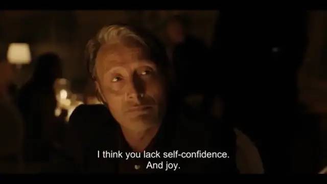 麦斯·米克尔森的舞步让观众如痴如醉,事实上他本人便是一位专业的舞者出身,这种自由式舞蹈是团体操的反面,后者需要清醒的头脑来完成整齐划一的动作,而前者则需要放空所有的头脑来展现完整的自我。随后,他飞身一跃,这一跃,跃向了绝对的宗教阶段,也赋予这场戏绝对的宗教意义。
