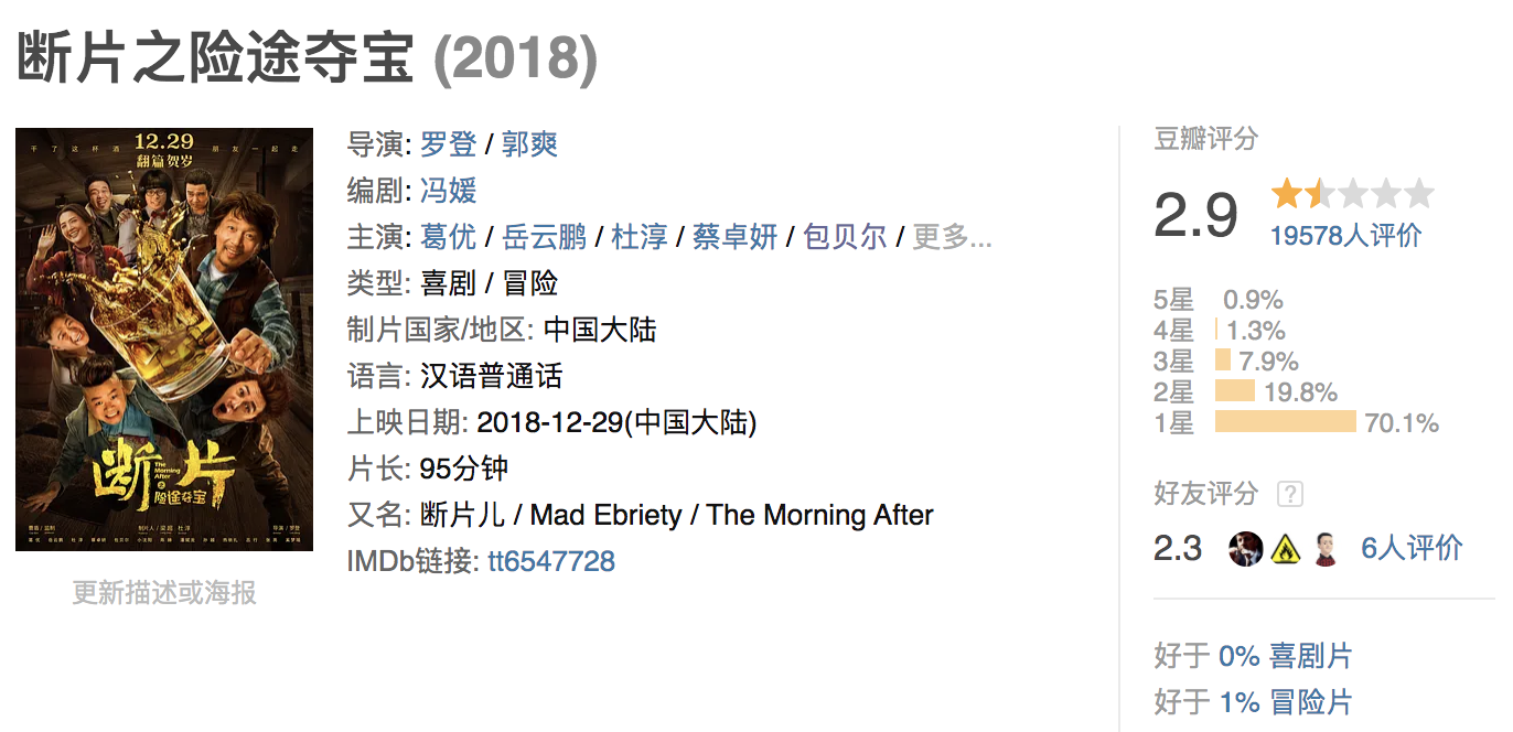 豆瓣2.9的评分,让葛大爷积累几十年的观众缘败到一塌糊涂