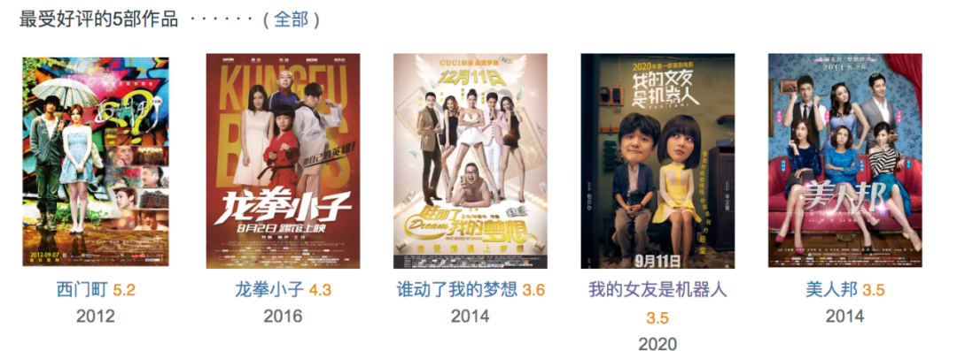 5年来,包贝尔拍出豆瓣6字头以下的烂片,概率高到吓人: