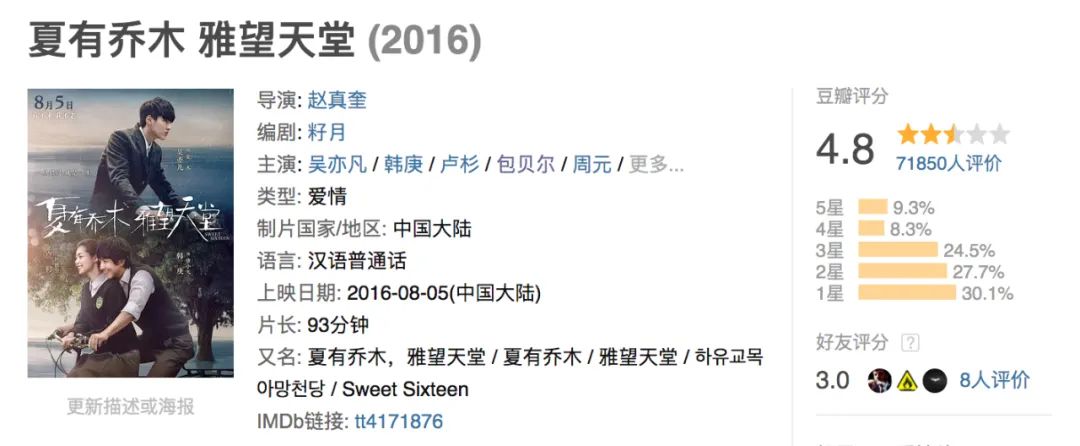 果不其然,豆瓣3.5,上映8天,仅拿下4254万的票房。