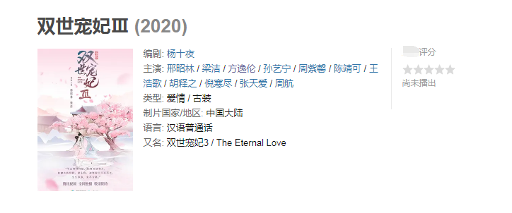 今年6月份,《双世宠妃3》就已经开机,在8月份就杀青,进入了紧张的后期制作。从目前网上流传的消息来看,《双世宠妃3》的播出时间已经打上了“2020”的标签,看来开播在即。