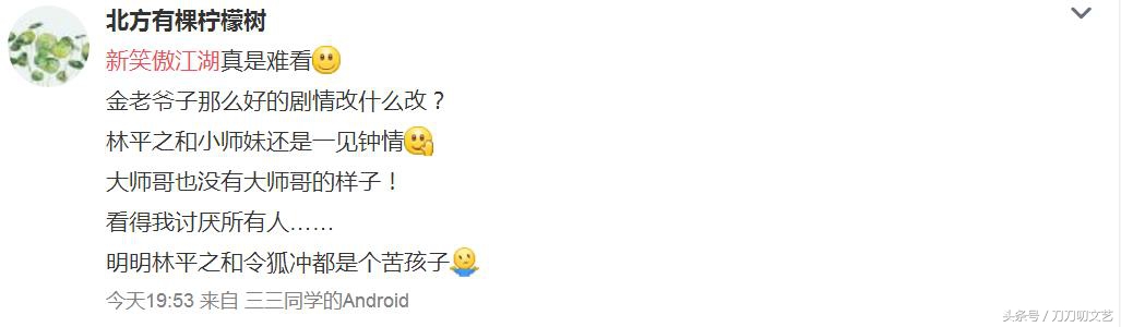 网友既吐槽这个“像过家家一样的选角”,又吐槽林平之和小师妹一见钟情这个改编:金老爷子那么好的剧情改什么改?