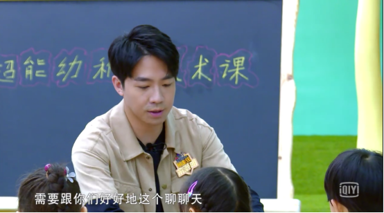 而画画的过程中也看出了俞灏明和任嘉伦教育方式的不同。俞灏明在画画前有开始了他的引导过程,孩子们已经表现出了他们的不耐烦,而紫色班已经开始画画了。