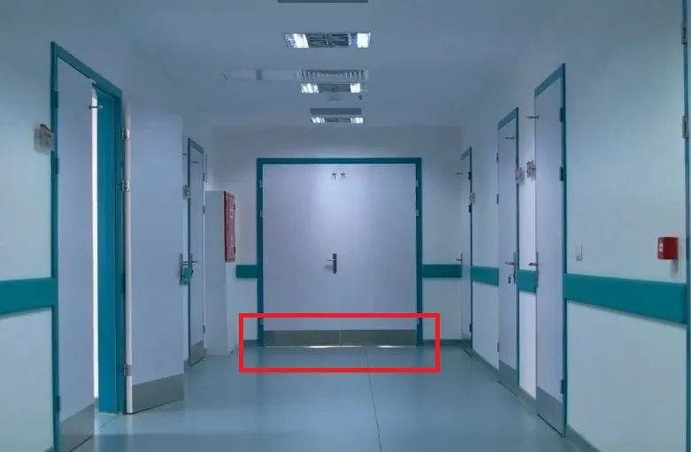 刚在医院苏醒的镜头,前方门下就出现了脚步移动的影子;