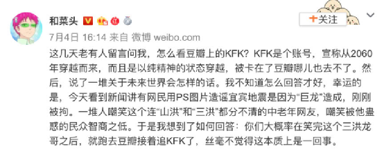 然后发帖者就会用诸如“失忆”、“不能说,说了会改写命运”等等设定,堵住网友的嘴。