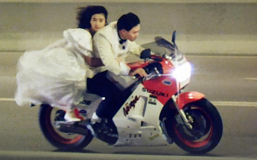 2,肖央坐在刘德华的摩托车上,是31年前的那场《天若有情》的梦想