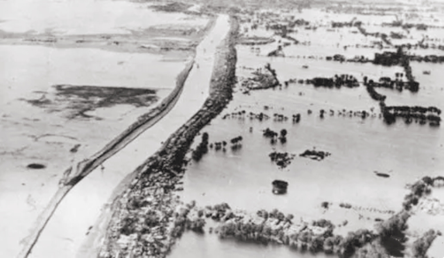 根据史料记载,“河南民宅冲毁一百四十余万家,陆沉八百余万亩,安徽、江苏耕地陆沉一千一百余万亩,倾家荡产者四百八十余万人。”