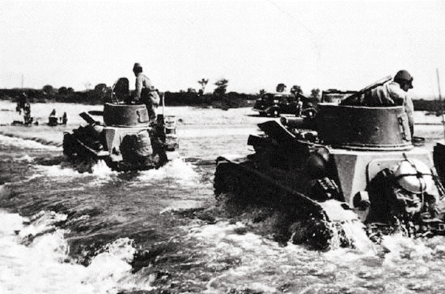 这样,必定使敌人的机械化部队的大部分装甲车、卡车、火炮牵引车等在滔滔大水中寸步难行。