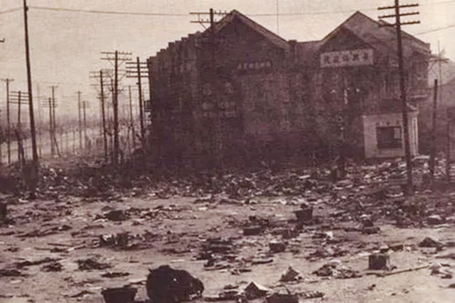 但他却为了掩盖事实,声称是日军大轰炸所为。