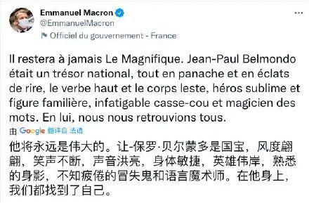 法国总统马克龙亲自发文悼念:他将永远是伟大的,是法国的国宝。