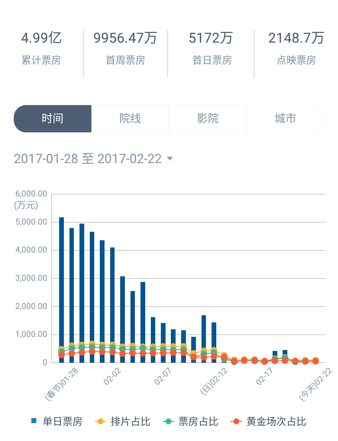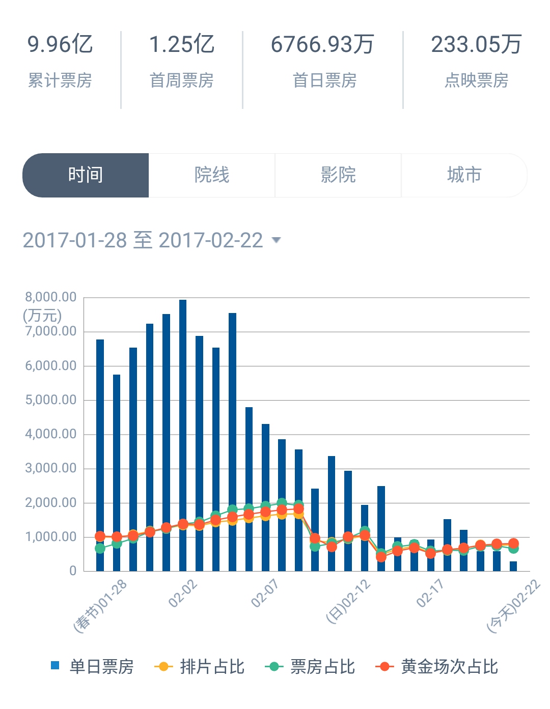 2017年春节档一共有六部影片选择在大年初一上映。截止目前已上映26天,今天我们来盘点一下这些的票房表现。