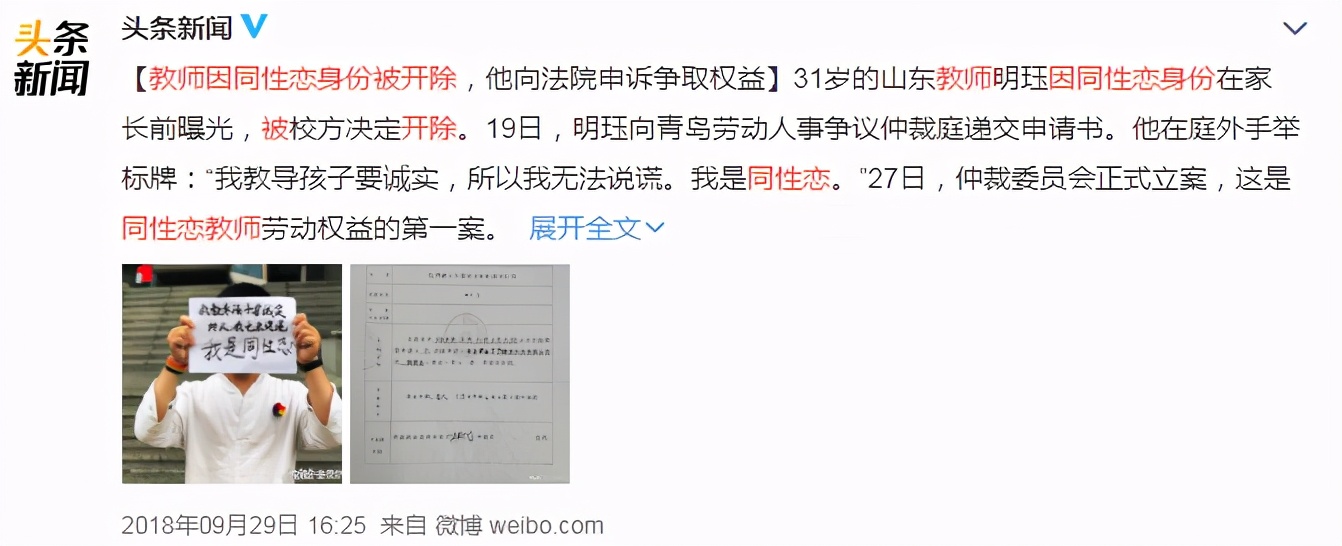 而两年前,31岁的山东教师明珏因同性恋身份在家长前曝光,被校方决定开除的事件更是引起了热议。
