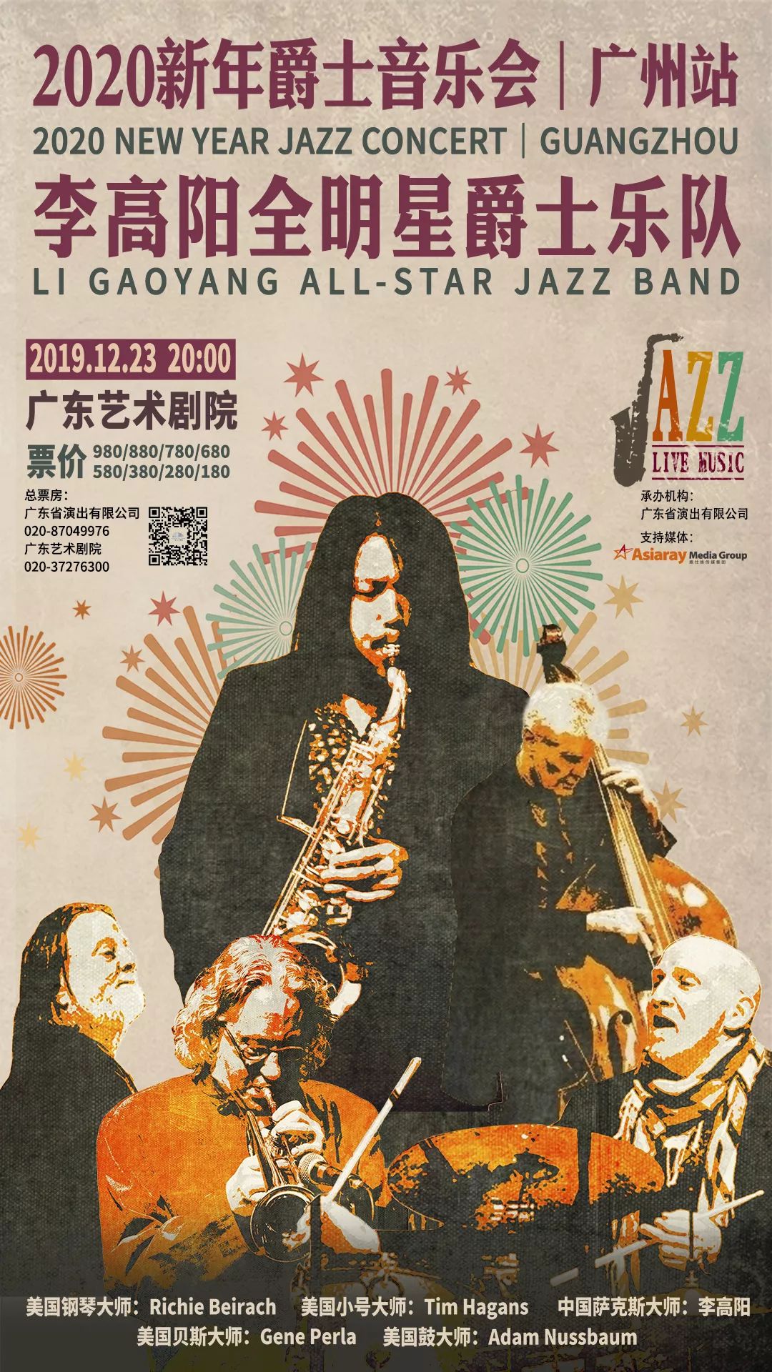 李高阳全明星爵士乐队2020新年爵士音乐会巡演,12月23日晚8点将奏响广东艺术剧院。