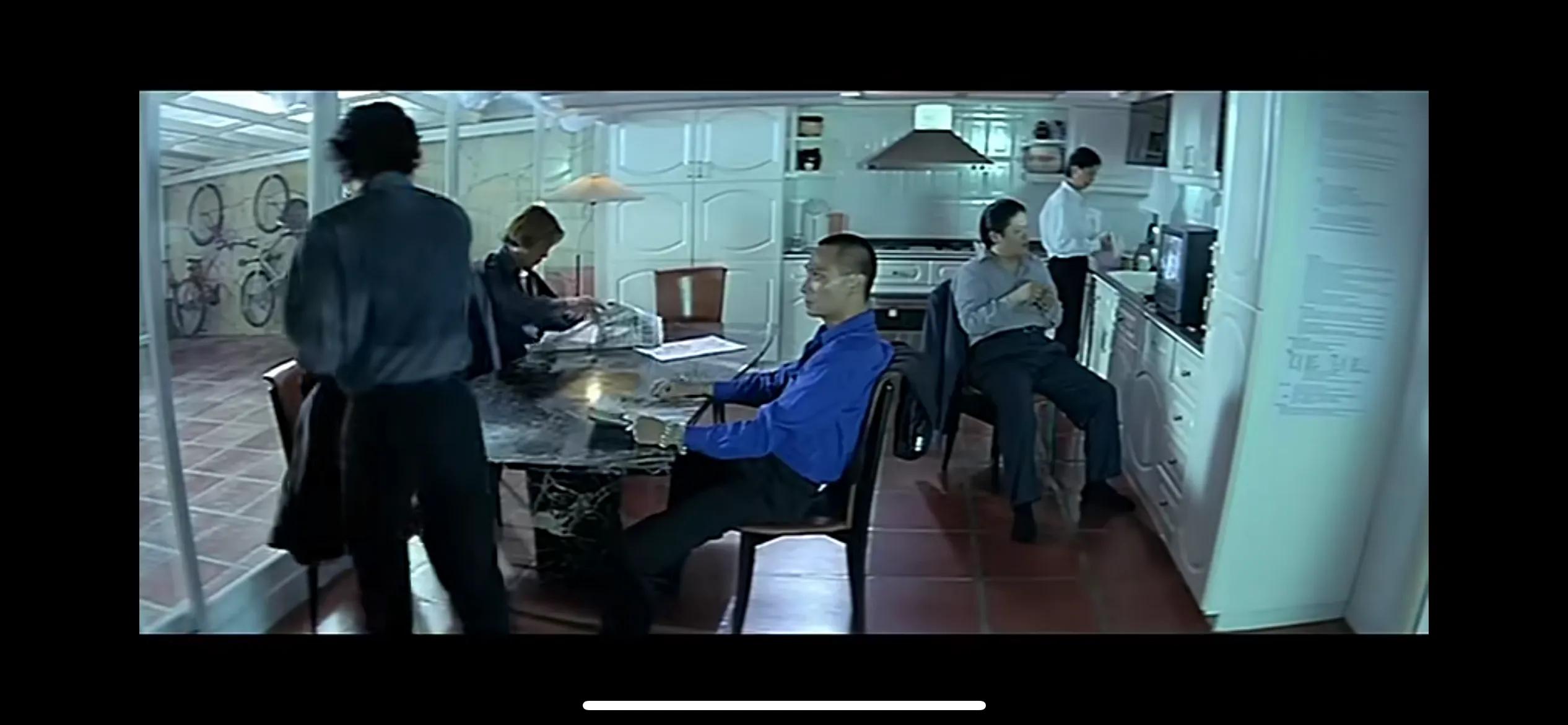 当“阿南”把他们五个人带到办公室见到“文哥”后这里有个细节,那就是“文哥”跟五个人握手的次序。在社团这种特殊的组织里一般老大跟手下握手的次序无形中也是一种等级的划分。第一个握手的是“阿鬼”这也充分说明了“阿鬼”的地位,但较为意外的是第二个握手的却是没人认识的“阿mike”之后才轮到“阿肥”另外两个由于是新人“文哥”自己都不认识。前面提到“阿肥”也是社团元老级人物,有一点可以肯定“文哥”是认识“阿mike”的,所以我假设“阿mike”在社团的地位非常高但只限于跟“文哥”单线联系,隐藏的比较深连“阿鬼”都不认识他,至于“阿mike”为何沦为泊车小弟这个可能性是开放式的在这里暂且不详细推测。部署之初也是“阿mike”给“文哥”穿上避弹衣的,这也一定程度佐证了他的重要性以及“文哥”对他的信任度。