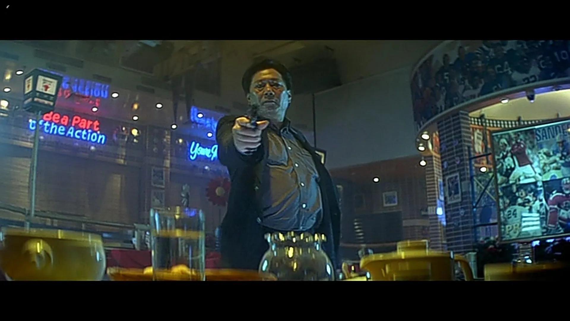 第二次枪战则来自商场内,也是本片最经典的高潮部分。由于之前部分剧情的衬托此时五人已经彼此有了信任度所以配合的相当默契而“阿mike”也充分体现了神枪手的冷静以及耐心,以一己之力在地势处于劣势的情况下封住了手扶电梯上的全部火力。除头号杀手仓惶逃走以外其余几个全部被击毙,这一仗也充分体现了团队合作的重要性。