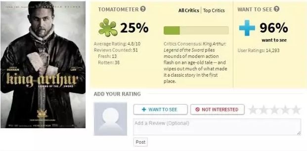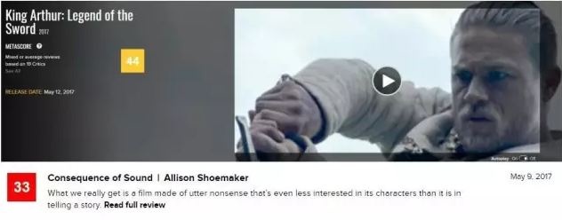 1905电影网专稿《亚瑟王:斗兽争霸》今天已在国内上映。目前的先期口碑不容乐观,烂番茄上仅得25%,相对权威性较高的metacritic评分也只有44分。