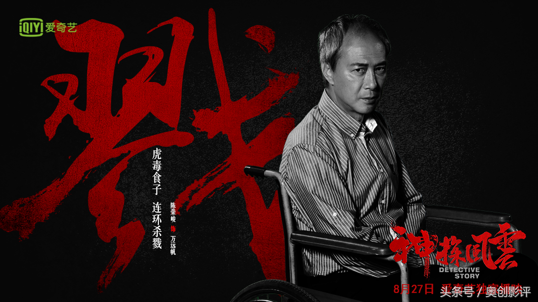 曝光的个人海报中,陈荣峻虽然坐在轮椅上不便行动,但是他凶恶的眼神,以及背景的“戮”字,揭示了他内心黑暗的一面。海报标题为“虎毒食子,连环杀戮”,短短的八个字,将万远帆的奸恶狠毒,刻画的淋漓尽致。