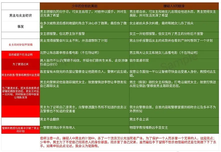 《少年的你》把《白夜行》和《嫌疑人x的献身》的主要设定抄得那叫一个标准,从这个调色盘可见一斑。然而,也有人认为,融梗很难被断定抄袭,它不像复制粘贴那样直观,但是抄情节、抄设定,这种行为本身就很卑鄙,原创作者绞尽脑汁创造出来的东西,竟然要被人无耻地抄袭却又无可奈何。
