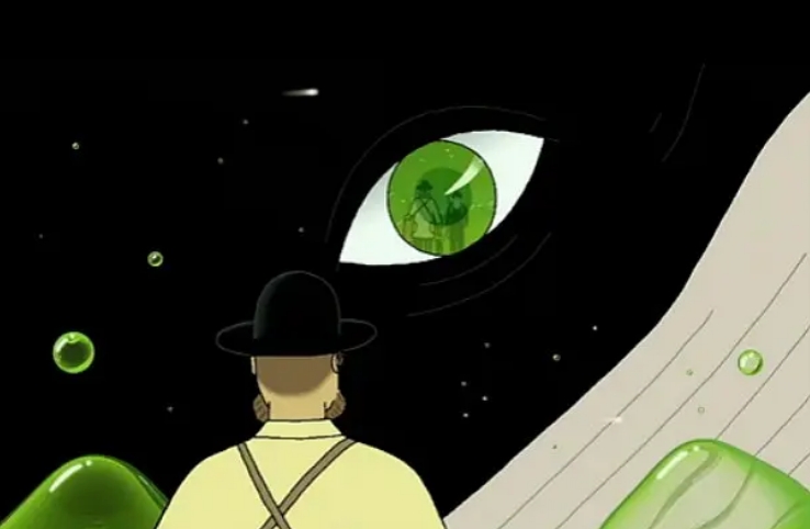 超现实主义艺术理念是对人们内在心理和精神世界的一项探索,在动画场景设计中应用超现实主义理念对于动画艺术作品具有十分重要的意义。在超现实主义艺术理念指导下所创作出的动画艺术作品,都具有让人们暂时脱离现实生活框架的束缚、摆脱对事物常态的认知等方面的能力。动画《鲸的鱼跃》中,有绿色玻璃呈现的海,各种各样匪夷所思的物品好像都不存在于现世,在冲破了理性与逻辑的枷锁之后,每一个宇宙、每一个世界都蕴含了无限可能,或许正如曾经的超现实主义艺术家们所言的那样:“无意识”的世界才是最真实的世界。