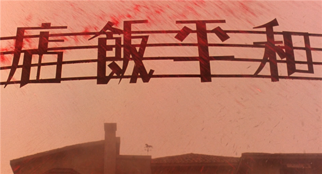 和平饭店是坐落在大漠中的一个破旧的客栈,现代建筑风格,招牌也是金属焊制,工业时代的标志。冷兵器时代结束了,但客栈江湖还在。