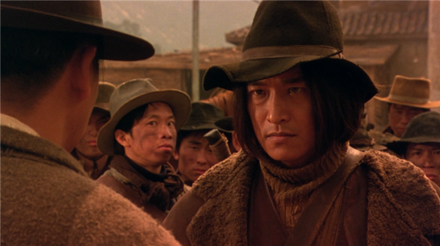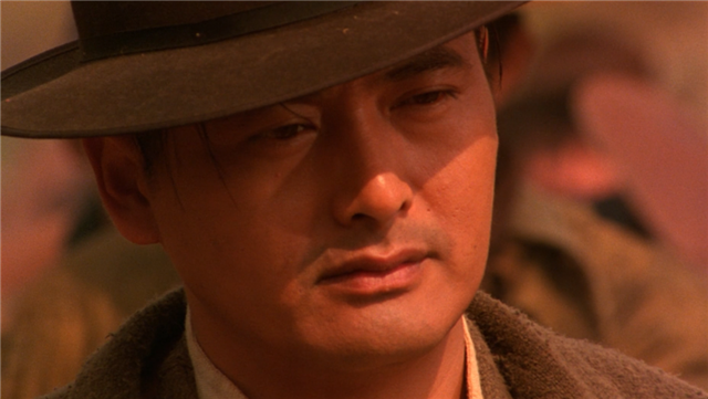 接着影片叙事回到十年后,大漠里的和平饭店,灰黄色调,风格转为类《新龙门客栈》。