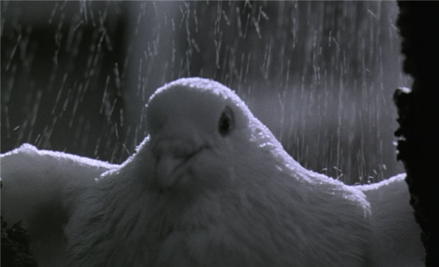 而吴宇森是本片的正牌监制,白鸽自然是少不了的。杀人王发哥将一个马仔追到角落正要杀死,白鸽停在窗外与他四目相对。