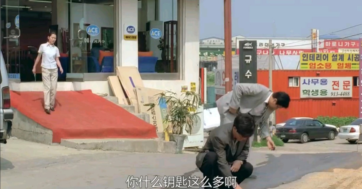 影片中出现了两次有关钥匙的情节,一次是金永浩要进自己的破房子时,顺任的丈夫问他:“你为什么拿这么多钥匙”。还有一次出现在他从家具店走出吃饭时,钥匙掉在马路上,合伙人说了同样的话。