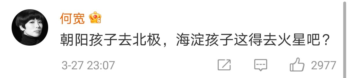 一位网友说道,朝阳区去北极,那海淀是不是要去火星?