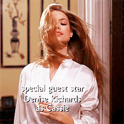 性感女演员丹妮丝·理查兹在《老友记》第七季第19集中客串了罗斯的表妹,她在剧中三段甩头发的唯美画面可谓男女通杀,堪称剧中的经典名场面。