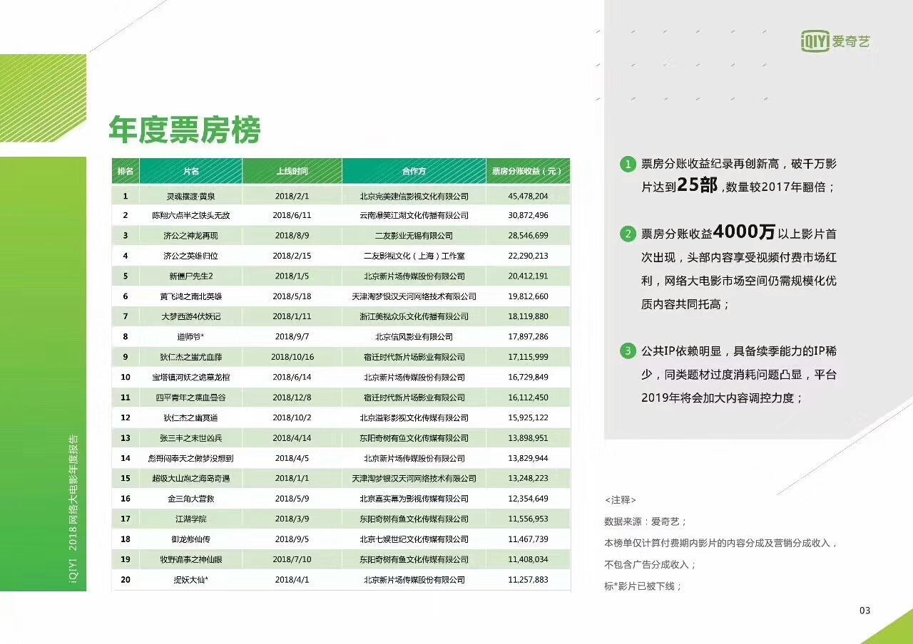 2018年,信风影业首次同爱奇艺文学云腾计划合作,制作了改编自“惊悚女皇”红娘子同名小说的民国玄幻电影《道师爷》,赢得了票房口碑的双丰收,也掀起了一波原著小说的阅读热潮。借鉴此成功经验,2019年信风影业将推出由天下霸唱热门同名小说改编的探险动作电影《鬼吹灯之怒晴湘西》;由爱奇艺文学云腾计划同名小说改编的电影《五行相术》、《青衣道师》等作品,在精良制作的基础上再借ip之力,放大作品价值。