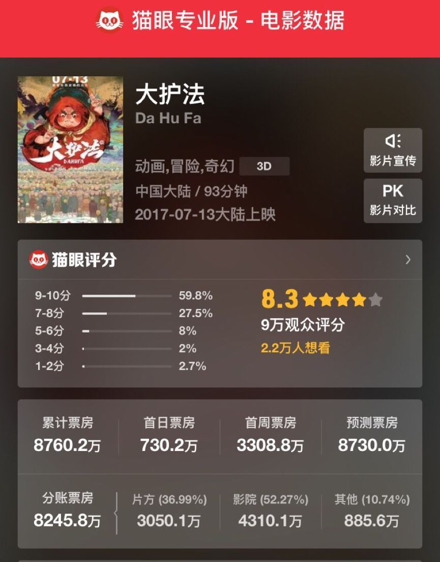 除了《十冷》、《魁拔》等系列电影之外,也就《大鱼海棠》、《大护法》、《大世界》有所成就。再之外,就只能算《熊出没》等低龄作品了。