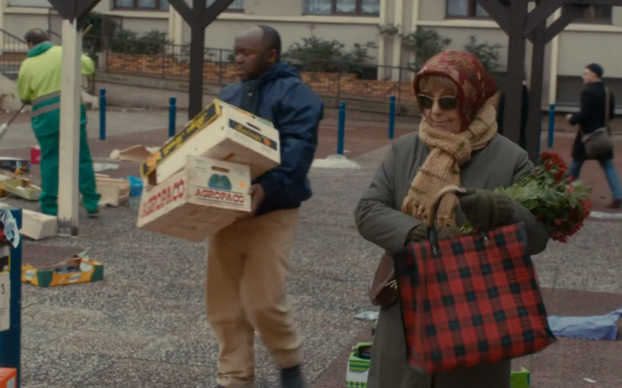 老太太捡垃圾,最先捡起的是一束被人丢弃的玫瑰,之后才是水果和大葱。她拿着玫瑰,像是香榭丽大街的优雅女人,透露着法国人特有的浪漫。