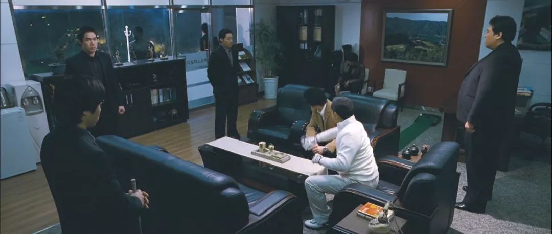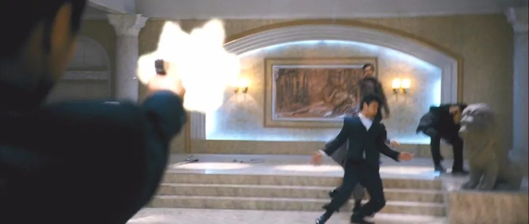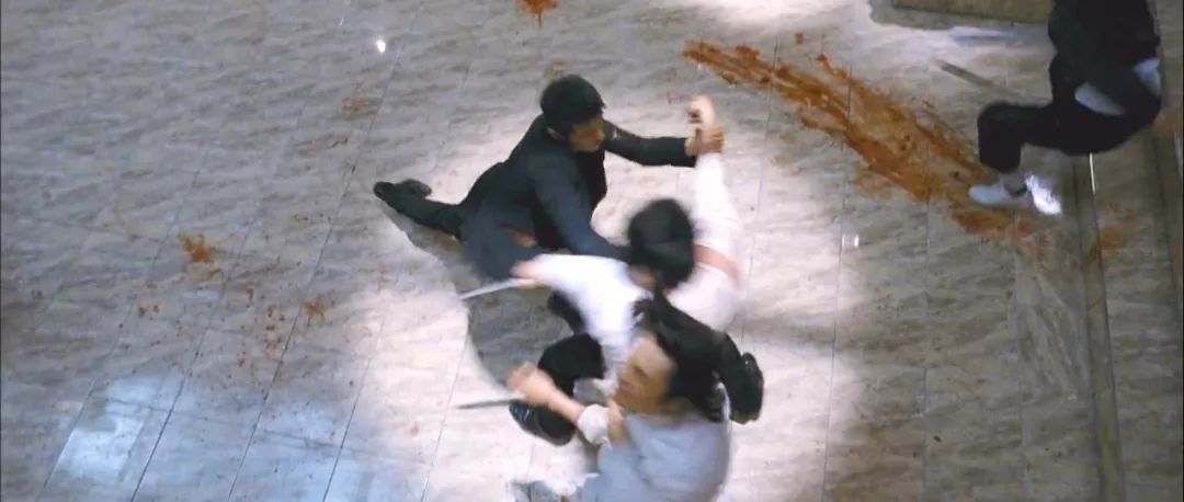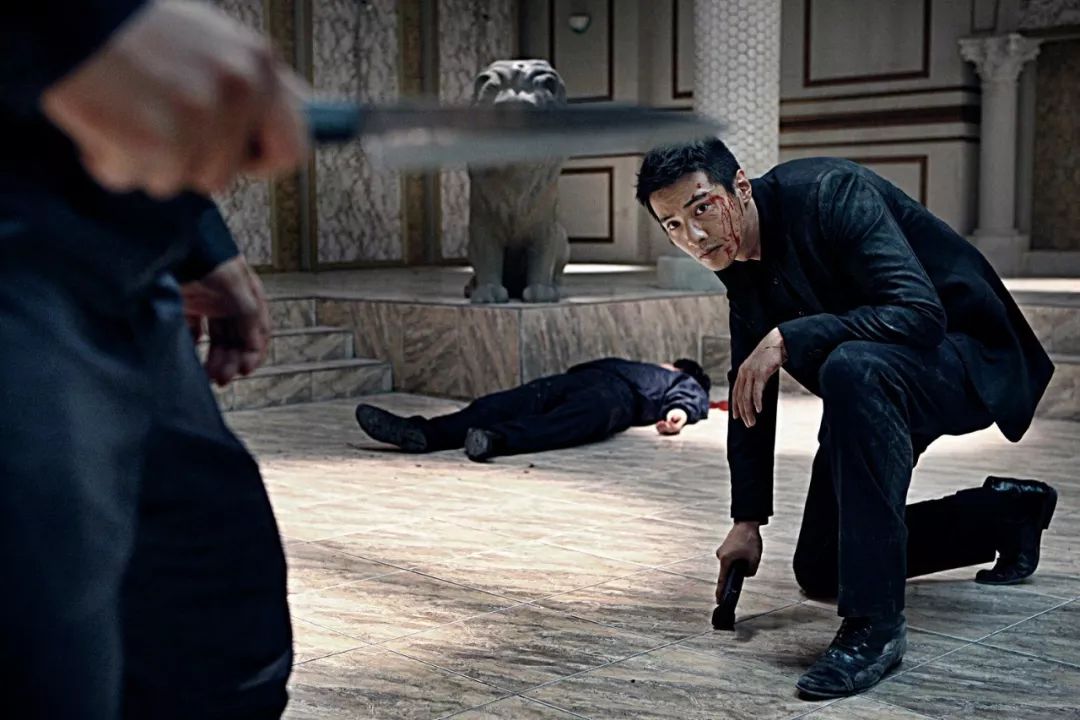 当然与其说是搏斗,不如说是屠杀,车泰锡以其特工的身手,面对这群黑社会就是老虎入羊群。他先是用枪解决掉好几个,再用小刀将那些小喽啰一个个刺死。