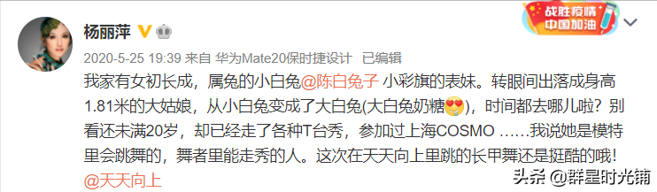 从杨丽萍的微博中可知,她夸白兔是模特儿里最会跳舞的,跳舞者最会走秀的好苗子。