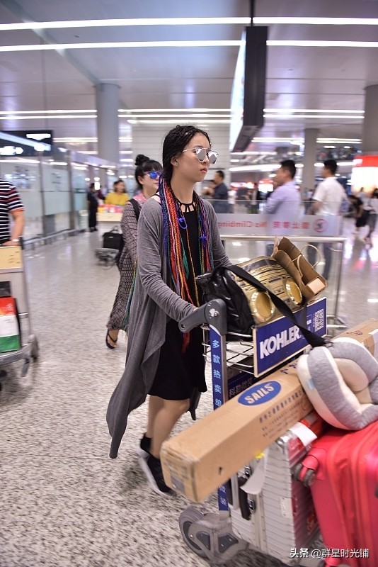 机场偶遇的照片中,身着中年灰色系带着墨镜身材走形的打扮和路人无异。