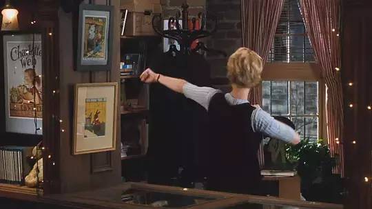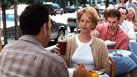 当乔知道自己喜欢的网友就是凯瑟琳的时候,十分吃惊,但还是硬着头皮走到了凯瑟琳的咖啡桌前。