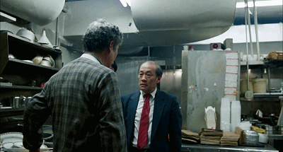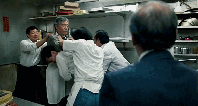 电影结尾处,父亲打工的小餐馆,老板欺负人要开除他。身为太极高手的父亲,钉在原地,周围四五个小伙子居然推不动他。