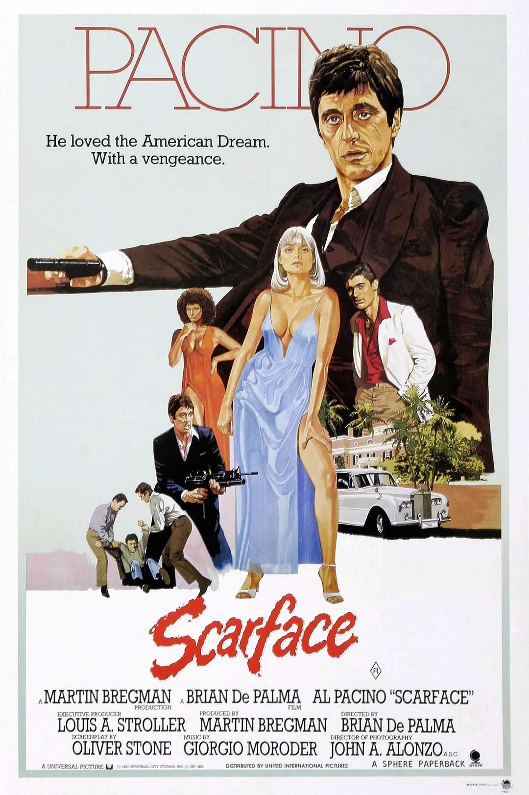 这部电影用了和霍华德·霍克斯那部著名的、由保罗·穆尼(paul muni)主演、受阿尔·卡彭 [1] 传奇人生启发拍摄而成的《疤面人》(scarface ,1932)相同的片名和部分故事结构。两部电影都因暴力镜头而受到谴责,两部电影都是关于一个犯罪老大的潮起潮落,两位角色都痴迷于他们的妹妹,两个人都因为使用了他们自己的产品而死——对于蒙塔纳来说,是可卡因;对于梅毒病人卡彭来说,则是妓女。但是德·帕尔玛的这部电影并非任何传统意义上的重拍。它采用了一条类似的故事线,甚至还有点《麦克白》的影子,并用来将一位新的角色置于一个新的时空中考察:1980年代早期的佛罗里达,在菲德尔·卡斯特罗(fidel castro)短暂允许古巴人大规模移民,送来大批疲惫不堪的民众,同时抓住机会清空他的牢房之后的那段时间里。