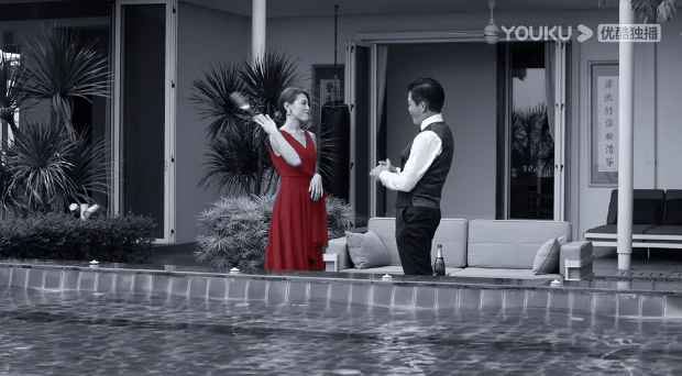 豪宅里,泳池旁。