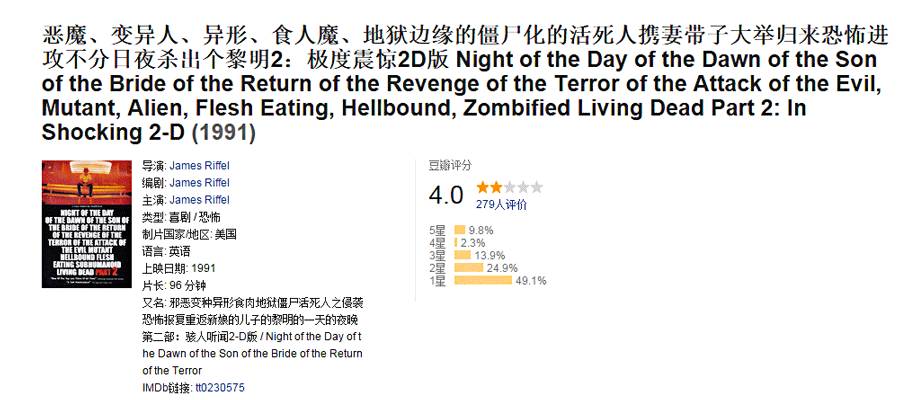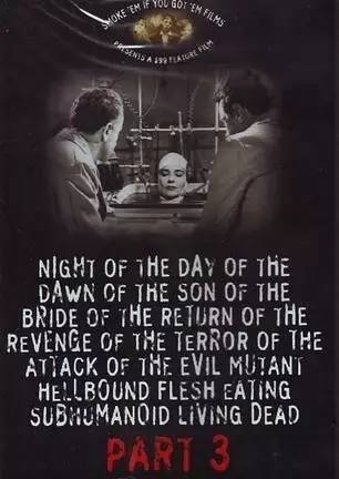 更可怕的是,这个奇葩电影还有续集:《邪恶变种地狱食肉类人僵尸活死人之侵袭恐怖报复重返新娘的儿子的黎明的一天的夜晚第三部》